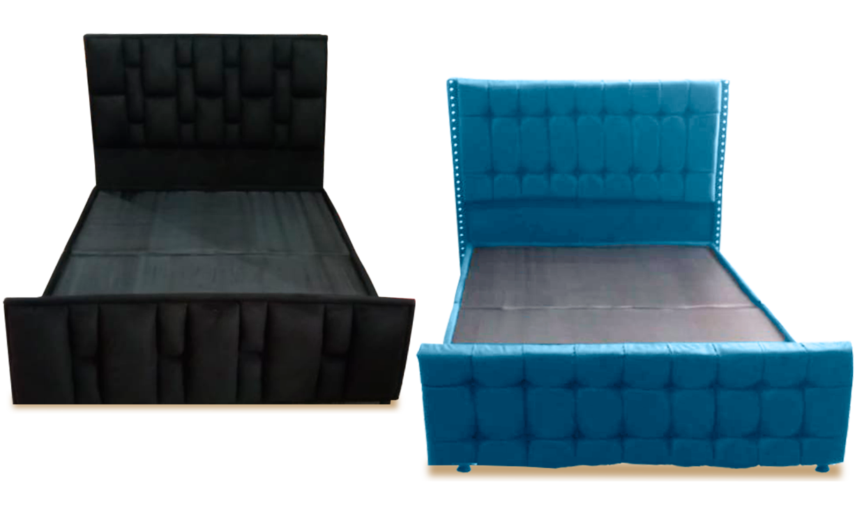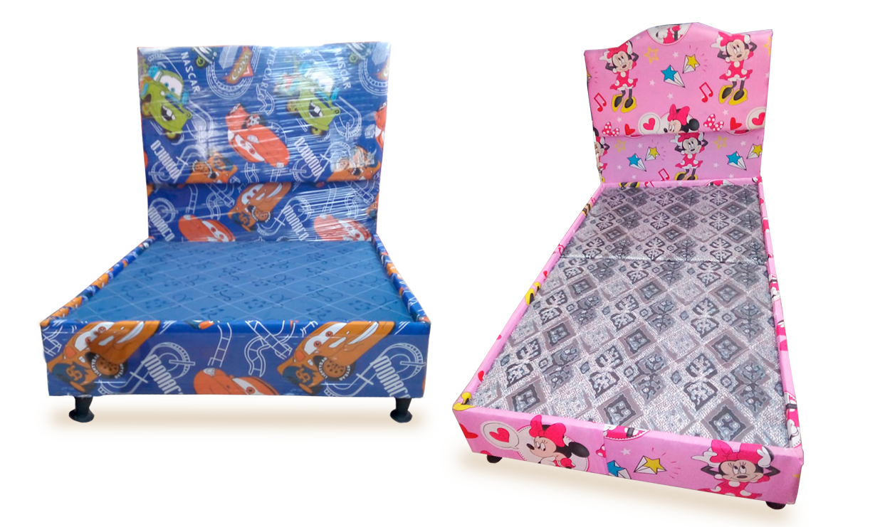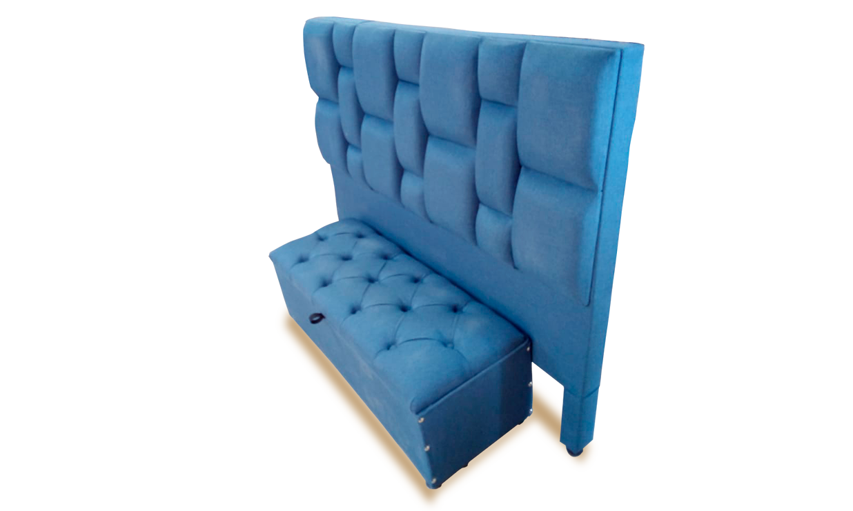 Elaboradas en sago y pino, en tela o cuero cuerotex, al gusto del cliente, en colores surtidos, patas de plástico de 10 cm con garantía de 1 año.