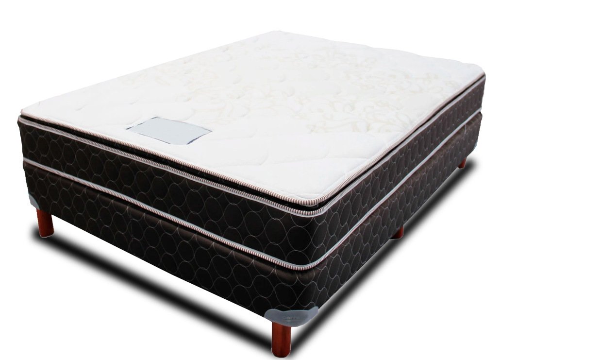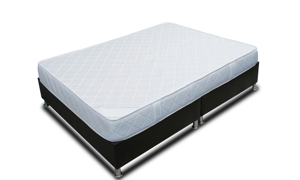 Elaborado en base resortada en alto carbono con suavizantes en DN 23 dándole una altura aproximada de 28 a 30 cm en tela yacar, garantía 5 años.