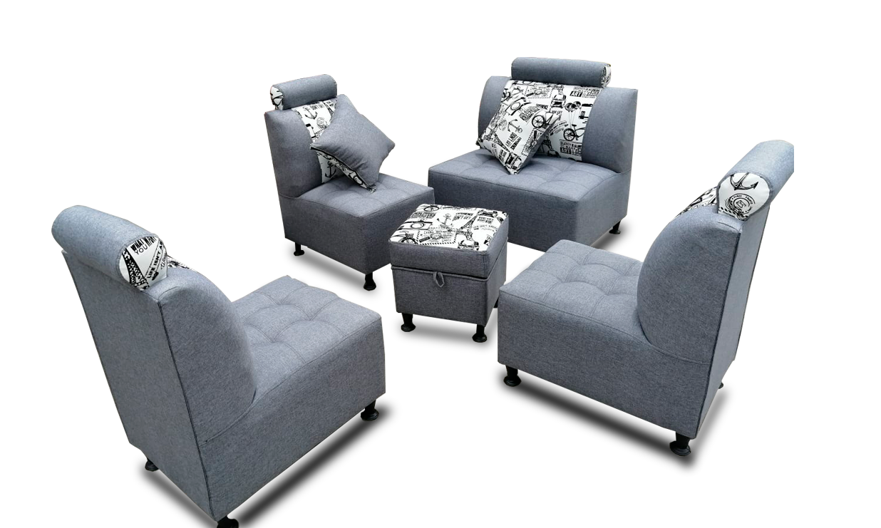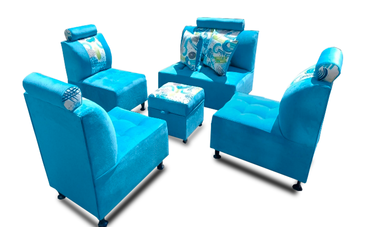 Salas elaboradas en pino y sago con espuma en DN 23, telas, colores según petición del cliente con garantía de 2 años.